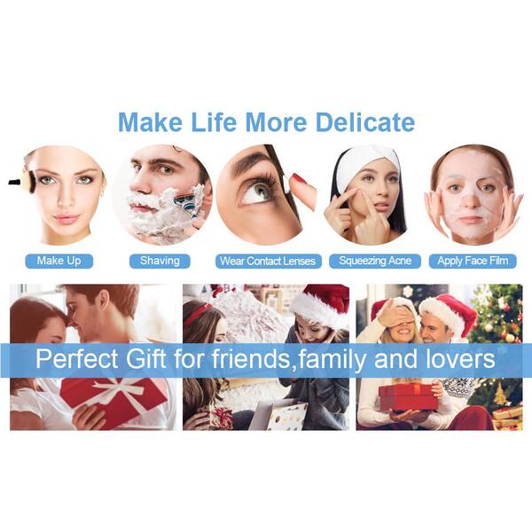 8 in. W x 8 in. H Round Framed Chrome Mirror, Height Adjustable, 1 x / 7xMagnification Mirror, 360° Swivel