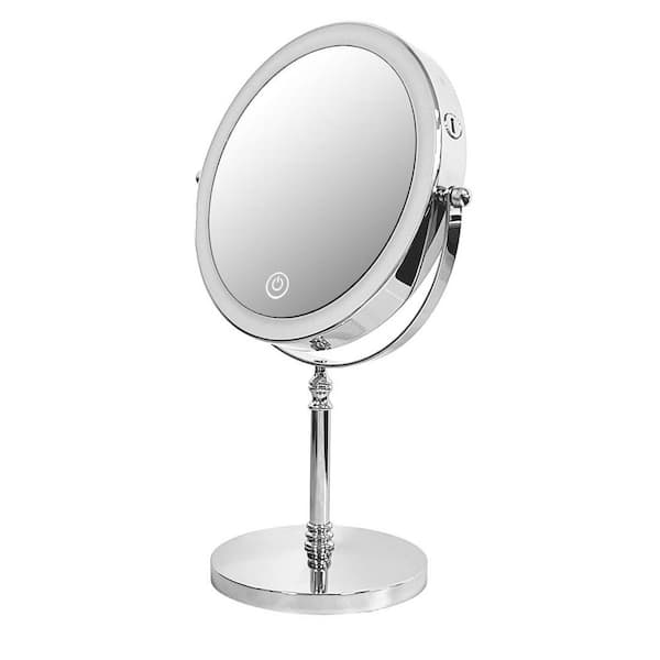 8 in. W x 8 in. H Round Framed Dimmable LED Lighted Makeup Double Sided Tabletop Vanity Mirror in Silver