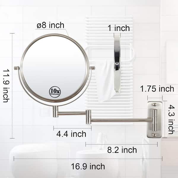 8 in. W x 8 in. H Round Framed Magnifying Wall Makeup Bathroom Vanity Mirror with 360-Degree Rotation in Nickel