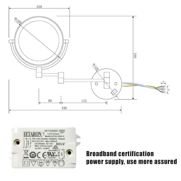 8 in. W x 8 in. H Small Round Magnifying 360-Degree Wall Mount Bathroom Makeup Mirror in Gold