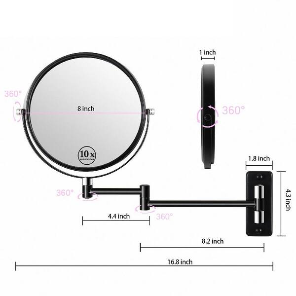 8 in. Wall Mounted Makeup Vanity Mirror with 1X / 10X Magnification Mirror, 360° Swivel and Extension Arm