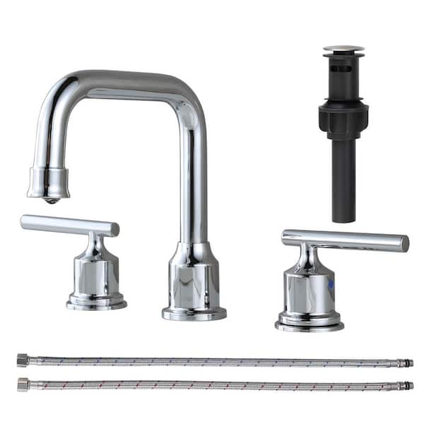 8 in. Widespread 2-Handle Bathroom Faucet with Pop Up Drain, 3 Hole Bathroom Sink Lavatory Faucet in Chrome