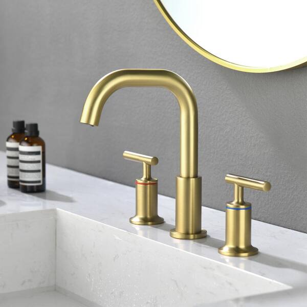 8 in. Widespread 2-Handle Bathroom Faucet with Valve and cUPC Water Supply Lines in Brushed Gold (8.86 in. High Spout)