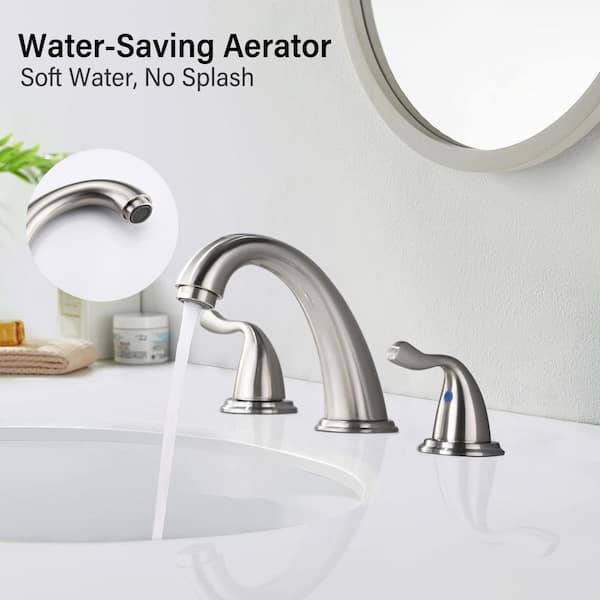 8 in. Widespread Double Handle Bathroom Faucet, 2-Handles Bathroom Faucet with Pop Up Drain in Brushed Nickel
