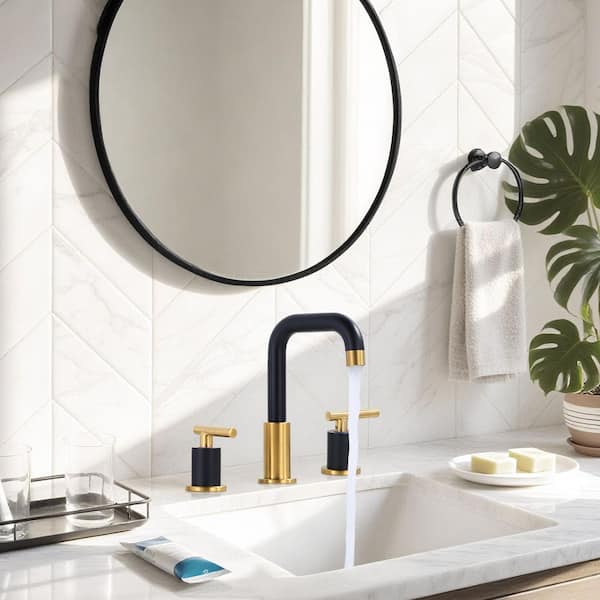 8 in. Widespread Double Handle Bathroom Faucet in Black and Gold Included Pop-Up Drain and Aerator