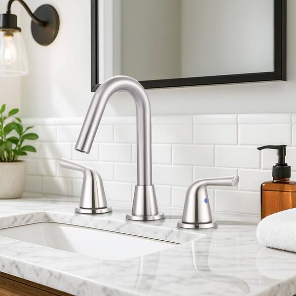 8 in. Widespread Double Handle Bathroom Faucet with Drain Kit Included in Brushed Nickel