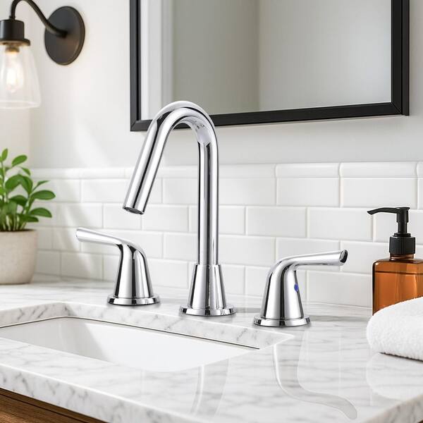 8 in. Widespread Double Handle Bathroom Faucet with Drain Kit Included in Chrome