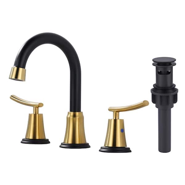 8 in. Widespread Double Handle Bathroom Sink Faucet in Gold and Black