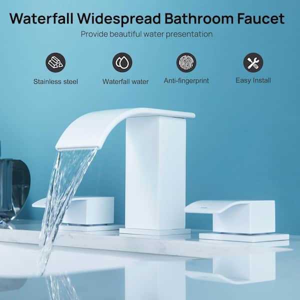 8 in. Widespread Double Handle Waterfall Spout Bathroom Vessel Sink Faucet in White with Pop Up Drain