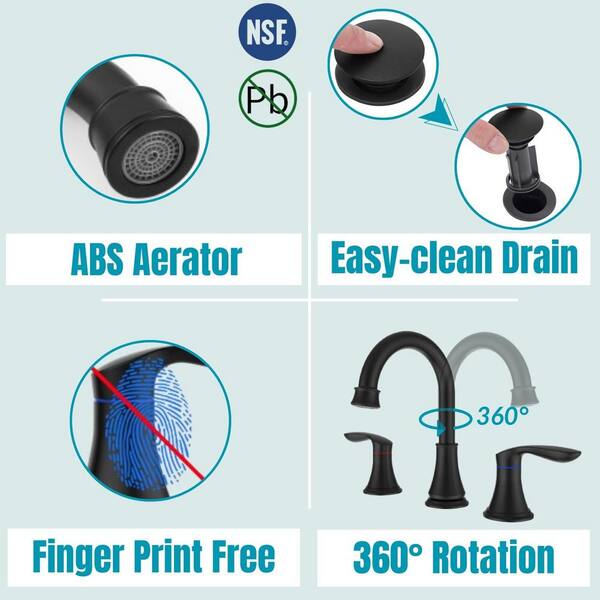 8 in. Widespread Dual-Handle Residential Bathroom Faucet with Pop Up Drain and Supply Hoses in Black