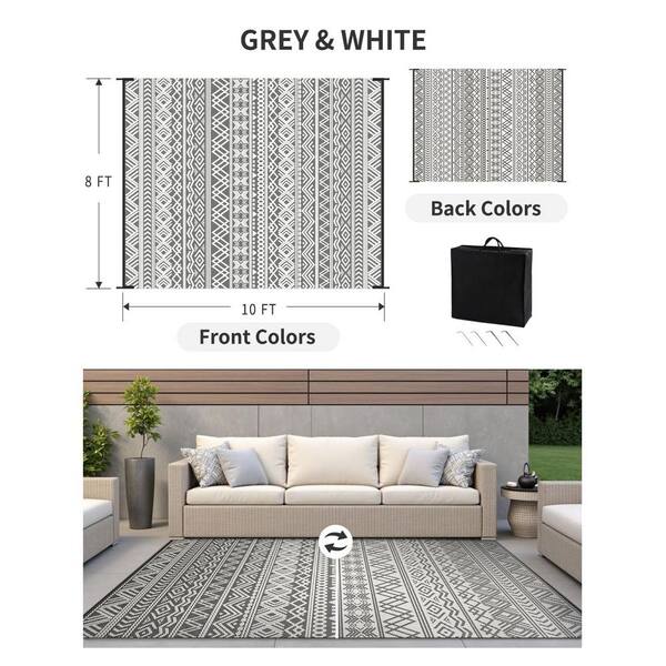 8 x 10 Waterproof Outdoor Patio Rug Mat Reverisble Plastic Straw Outdoor Rug Boho Grey