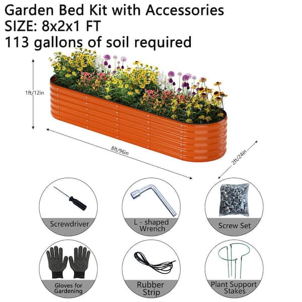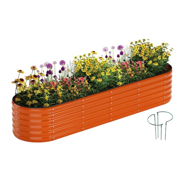 8 x 2 x 1 ft. Metal Planter Grow Garden Box Raised Garden Bed (Orange)