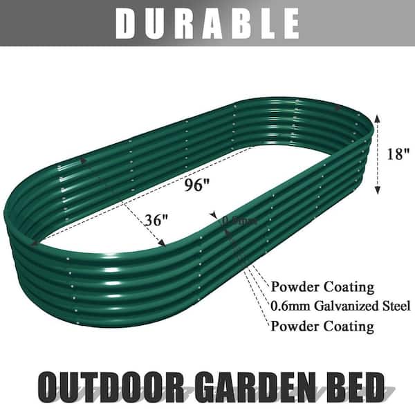 8 x 3 x 1.5 ft. Oval Galvanized Steel Raised Garden Beds in Green for Planting Vegetables, Flowers, Herb