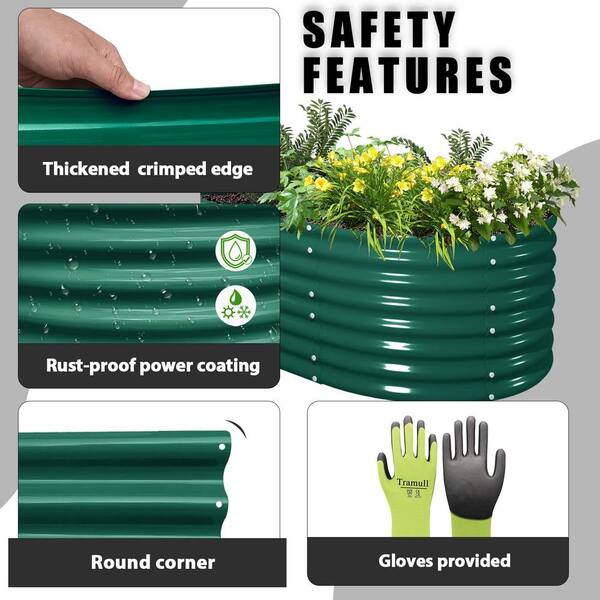 8 x 3 x 2 ft. Green Oval Galvanized Metal Raised Garden Beds