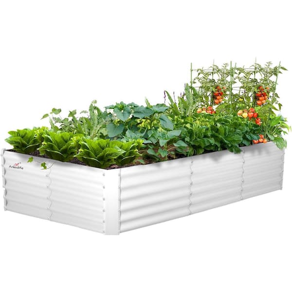 8 x 4 x 1. 5 ft. Metal Rectangular Antique White Galvanized Raised Garden Beds Kit, Deep Root Planters 359 Gal. Capacity
