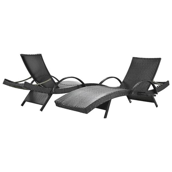 80''L Black Wicker Outdoor Chaise Lounge with Adjustable Backrest and Pull-out Side Table (Set of 2)