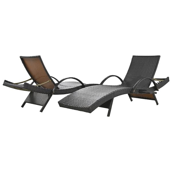 80''L Dark Brown Wicker Outdoor Chaise Lounge with Adjustable Backrest and Pull-out Side Table (Set of 2)