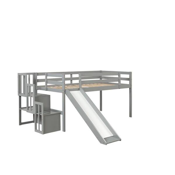 82.56 in. W Gray Wood Twin Loft Bed