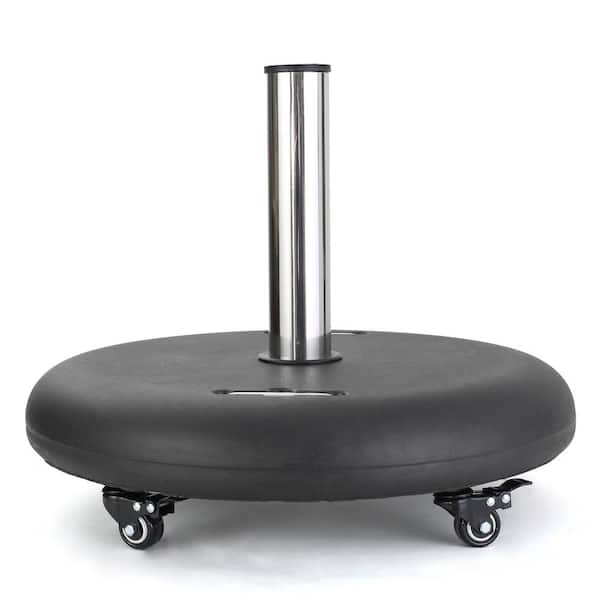 82 lb. Round Patio Umbrella Base with Wheels 21.65 in. Black
