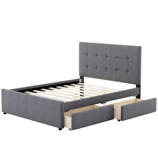 84.1 in. W Gray Queen Size Linen Upholstered Platform Bed Two Drawers