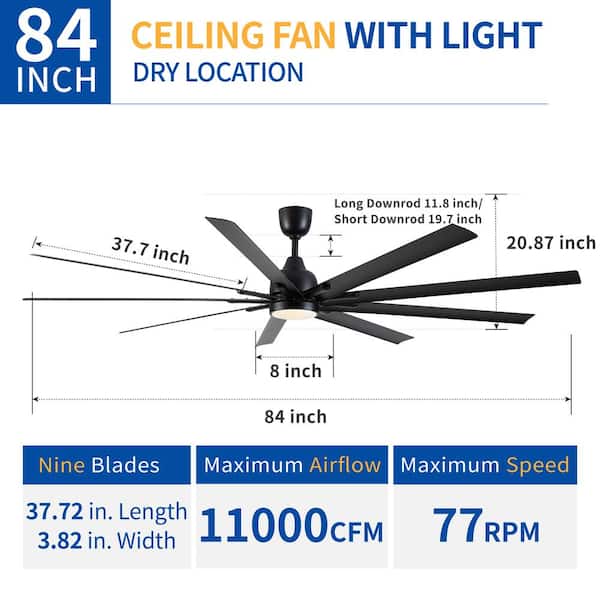 84 in. Integrated LED Indoor Black Ceiling Fan Lighting with Remote Control and 9 Black Blades