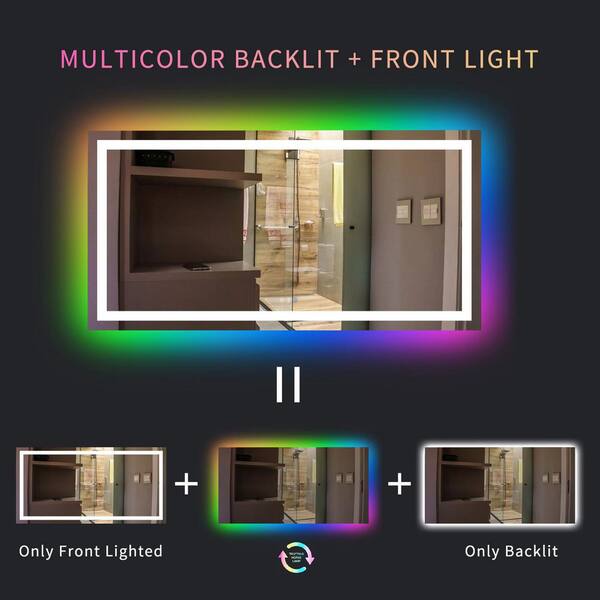84 in. W x 32 in. H Rectangular Frameless Anti-Fog LED Color Backlit Wall Mount Modern Decorative Bathroom Vanity Mirror
