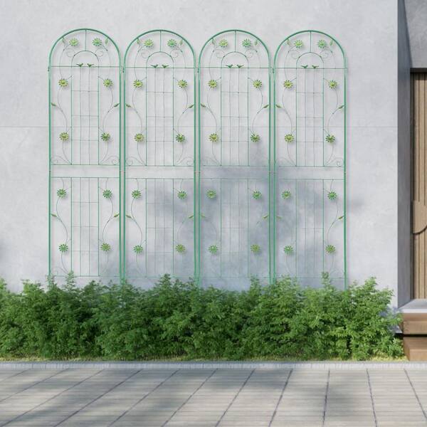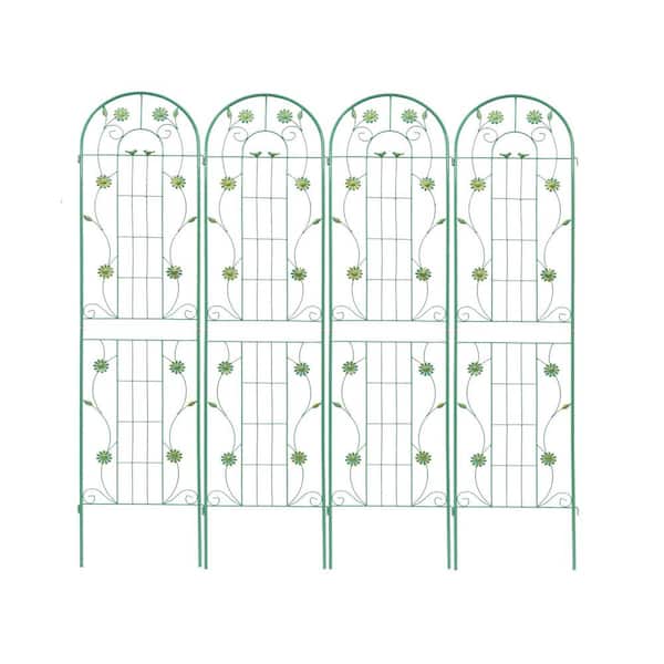 86.7 in. Outdoor Flower Support, Metal Garden Trellis, Rustproof Trellis for Climbing Plants, Green (4-Pack)