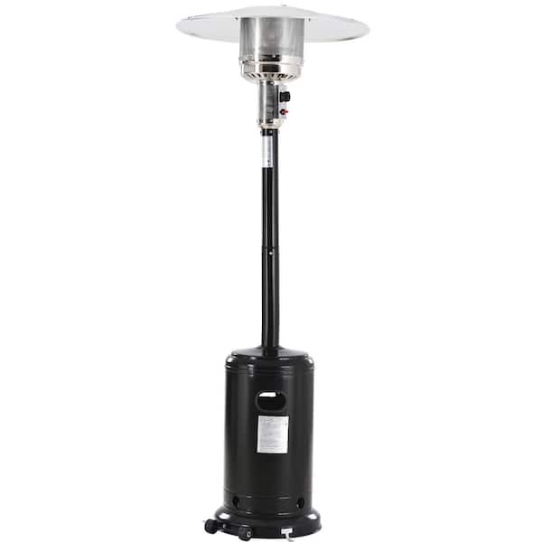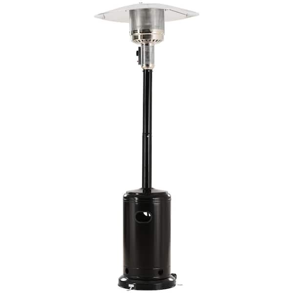 87 in. 48000 BTU Black Outdoor Patio Heater Standing Propane Gas Garden Heater with Adjustable Table and Moving Wheels