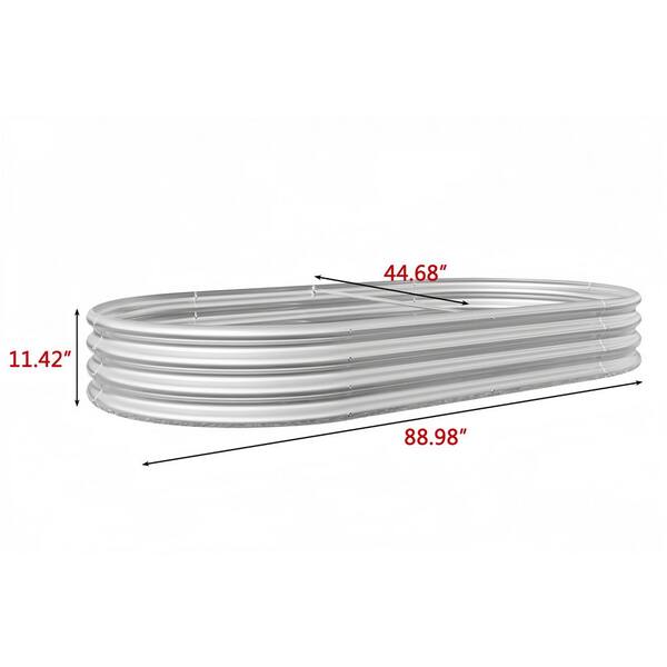 88.99 in. x 44. 68 in. x 11. 42 in. Oval Metal Raised Garden Bed in Silver
