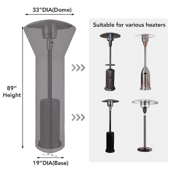 89 in. H x 33 in. D x 19 in. B Patio Heater Cover with Zipper and Storage Bag, Waterproof Outdoor Heater Cover, Grey