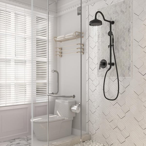 8in Single Handle 1-Spray Shower Faucet 2.5 GPM with Pressure Balance Valve in. Matte Black