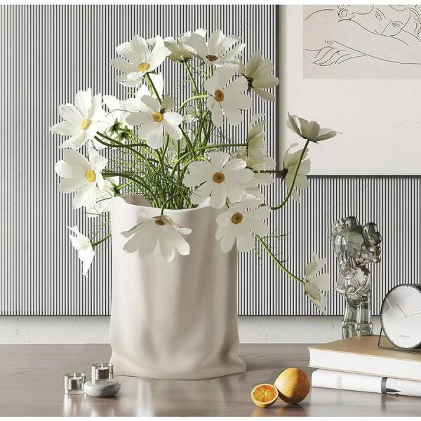 9.1 in. Ceramic Paper Bag Vase ,Crinkle Fold Design, Wabi-Sabi Boho Decor for Home and Gifts