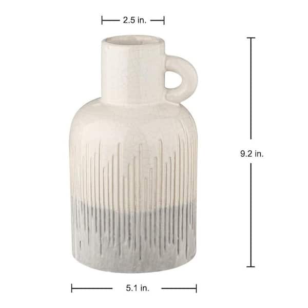 9.2 in. White Round Ceramic Vase 2-Tone Boho Flower Vase with Handle Pottery Bud Jug Vase for Flower Arrangement