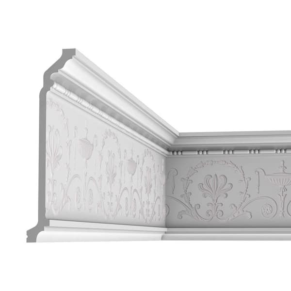 9-3/4 in. x 2-1/2 in. x 78-3/4 in. Acanthus Leaves and Bead and Reel Primed White Polyurethane Crown Moulding