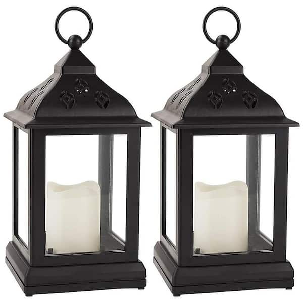 9.5 in. x 4 in. Black Plastic Vintage Lantern with LED Candle (2-Pack)