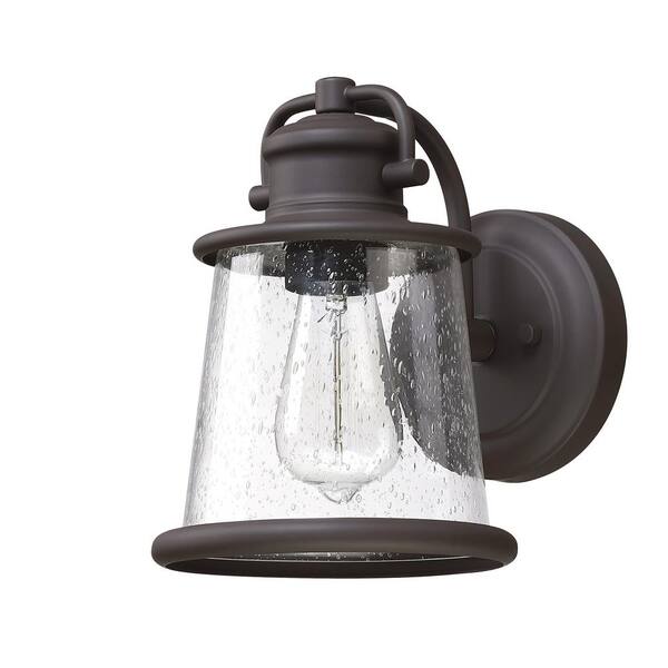 9.57 in. 1- Light Dark Bronze Outdoor Wall Mount Lantern Sconce with Seeded Glass Shade, No Bulbs Included