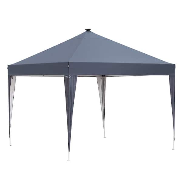 9.8 ft. x 9.8 ft. Outdoor Canopy Tent In Black Thicker Oxford Cloth Adjustable Height with LED Lights