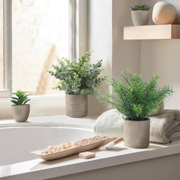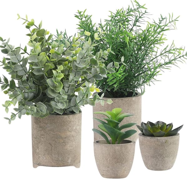 9.8 in. H 4 Packs Green Indoor Eucalyptus Rosemary Succulents Artificial Plants for Living Room Decor