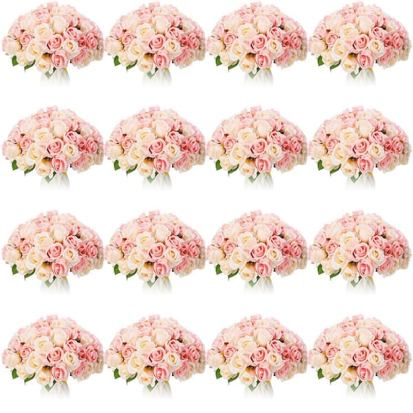 9.84 in. Pink Outdoor Artificial Rose Flower for Home 240 Pcs
