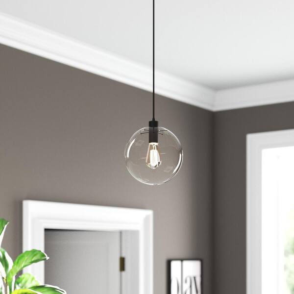 9.9 in. Dia 1-Light Black Globe Mini Pendent with Clear Glass for Kitchen Island Dining Room