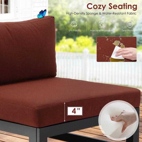 9-Piece Outdoor Gray Aluminum Patio Furniture Conversation Set Modular Fire Pit Set with Black Cushion, Lounger, Ottoman