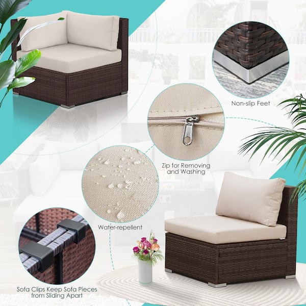9-Pieces Brown Wicker Outdoor Sectionals Patio Furniture Set Conversation Set with Fire Pit Table and Beige Cushions