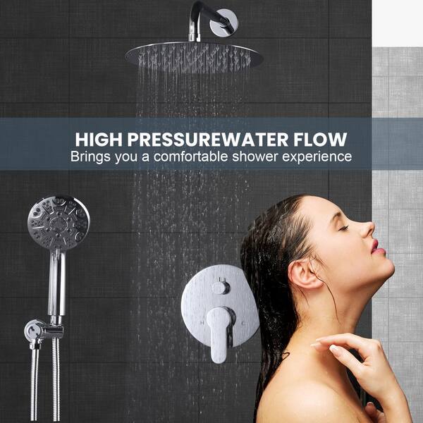 9-Spray Patterns with 1.8 GPM 10 in. Wall Mount Rain Fixed Shower Heads in 10 in. Polished Chrome