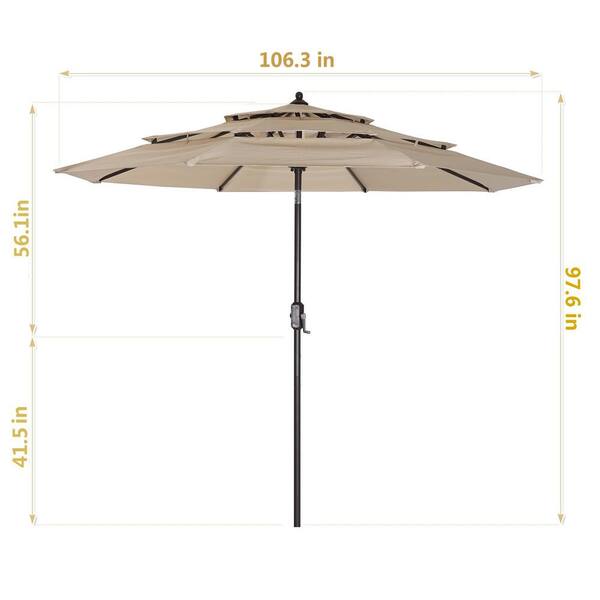 9 ft. 3-Tiers Outdoor Market Patio Umbrella Table Umbrella with Push Button Tilt, Crank and 8 Ribs in Beige