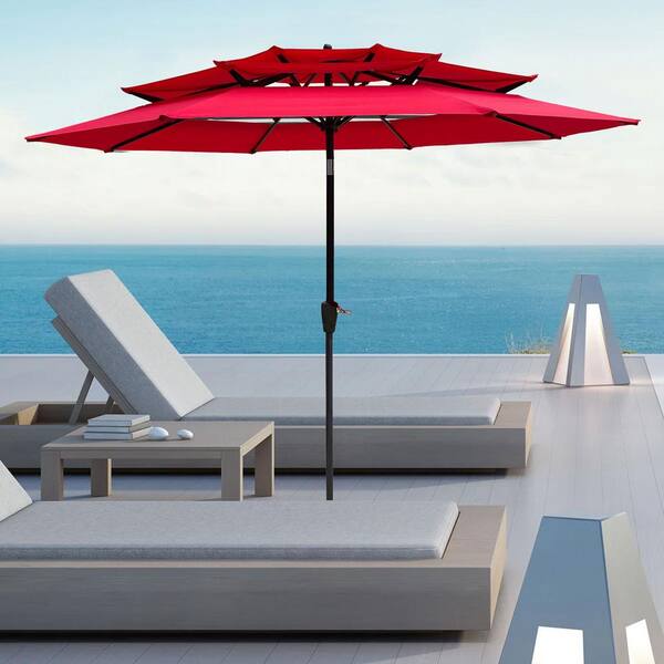 9 ft. 3-Tiers Patio Umbrella in Red with Crank and Tilt Push Button for Market Garden Pool Backyard