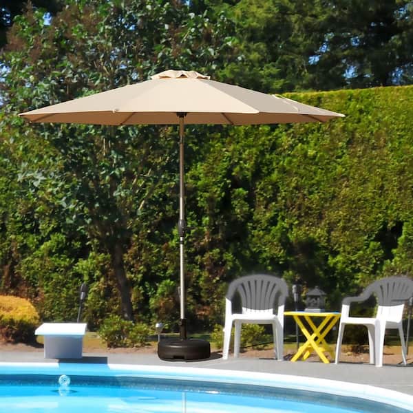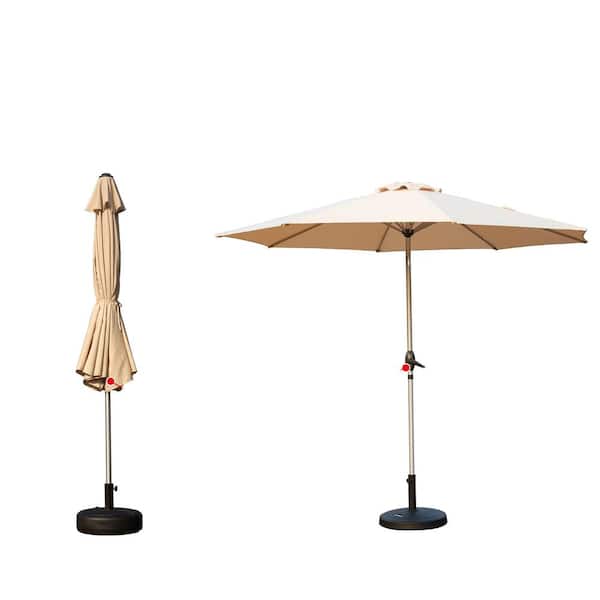 9 ft. Aluminium Market Patio Umbrella Outdoor Table Umbrella with Push Button Tilt and Crank, in Beige