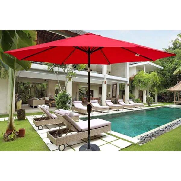 9 ft. Aluminum Market Crank and Push Button Tilt Waterproof Patio Umbrella in Mushroom Red