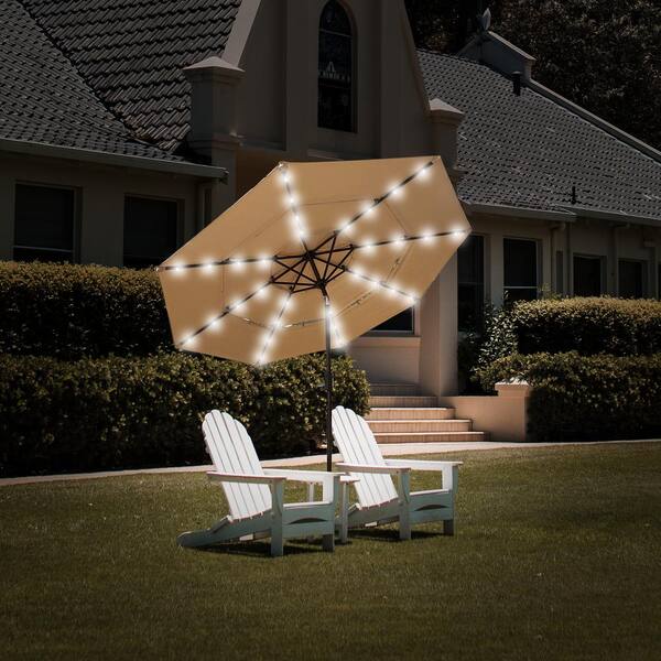 9 ft.Aluminum Market Patio Umbrella with 32 LED Lights in Beige