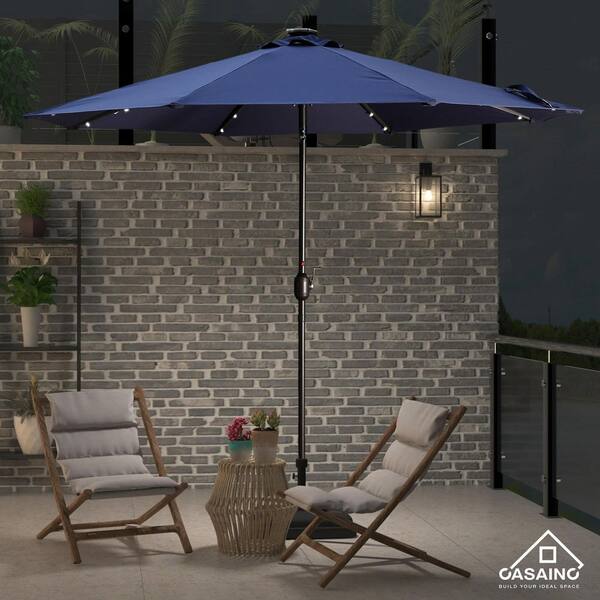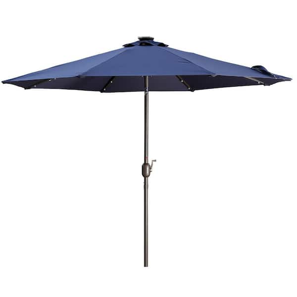 9 ft. Aluminum Market Solar Lighted Patio Umbrella in Navy