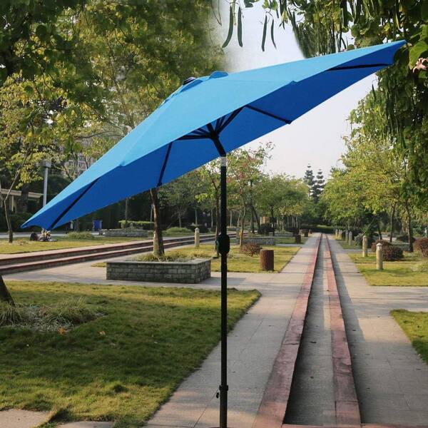 9 ft. Aluminum Market Umbrella Tilt in Blue with 8 Sturdy Ribs